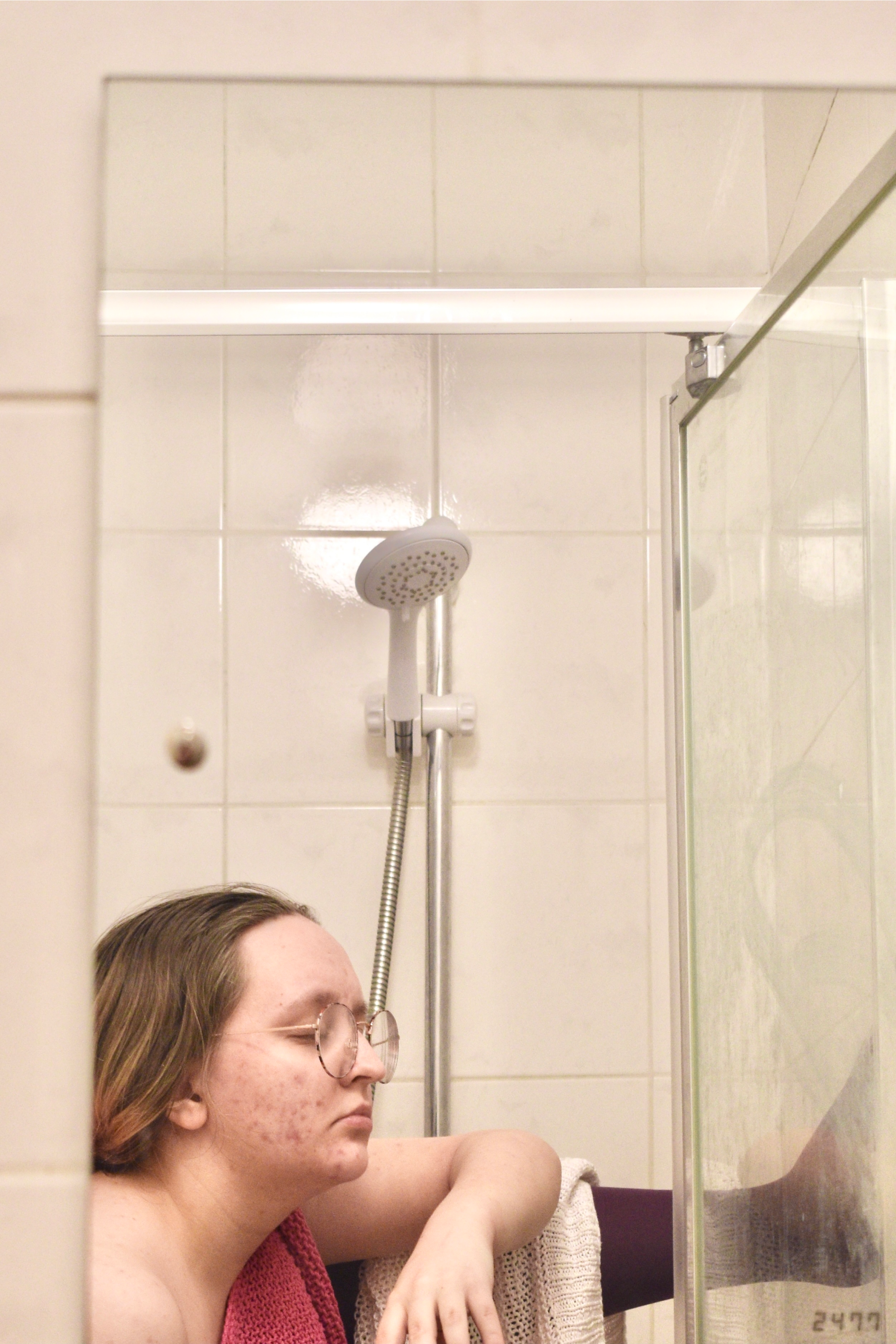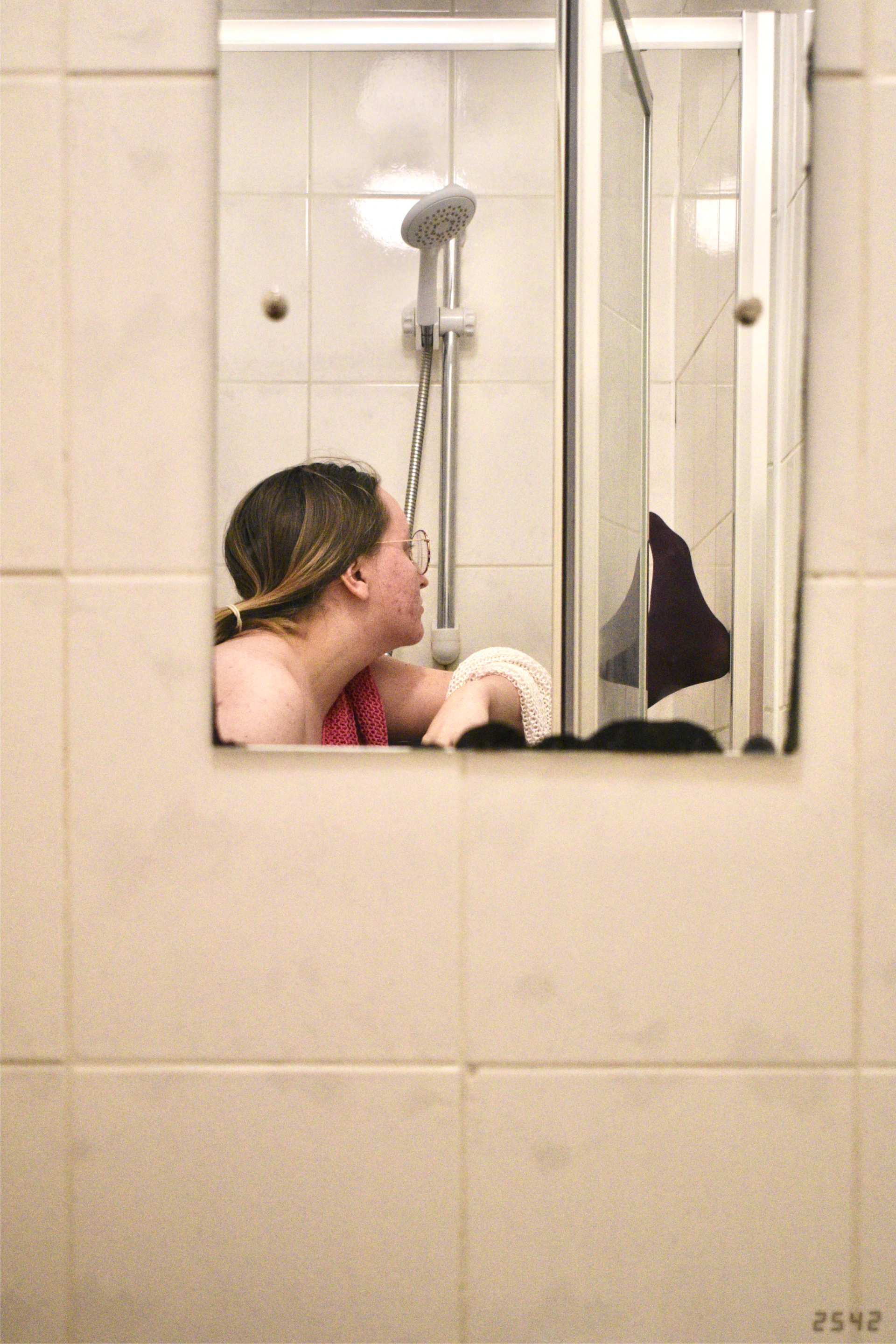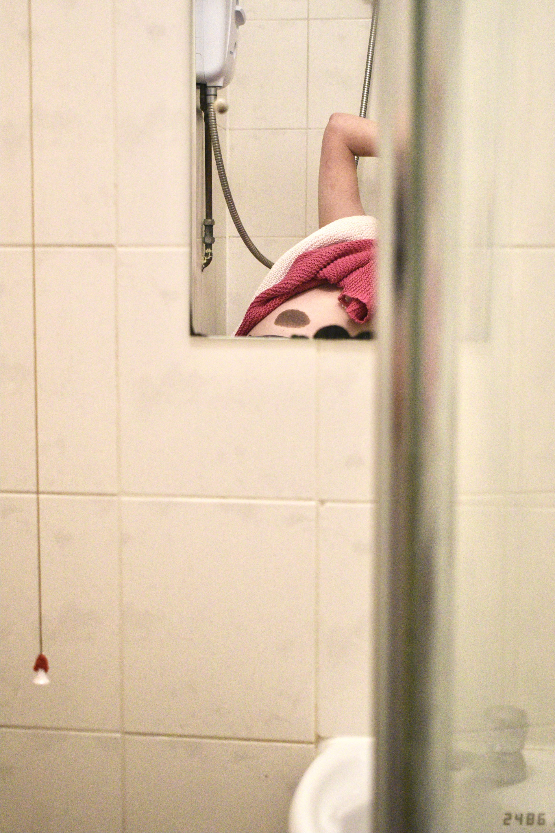 The design of this room was rather strange in that whilst in the shower you were confronted with a naked image of yourself: an image that has often felt strangely unfamiliar to me. In these photos a disconnect is felt not only between the image and image-maker, but also within the body itself.
